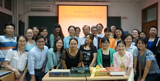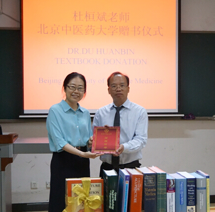 2015年6月16日,在我校举行了加拿大卡尔加里中医针灸学院院长杜桓斌博士(Dr. Huanbin Frank Du)向我校赠书仪式。杜博士此次捐赠了涵盖中医基础理论、中医诊断、针灸学、中药学、方剂学、中医临床6大学科共计12册英文中医药学教材,均属Churchill Linvingstone等欧美专业医学书籍出版社为英语国家中医学习者、从业人员编写的专业教材,被海外中医高等教育院校广泛使用。