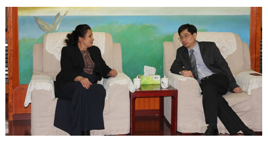 2015年2月4日,土库曼斯坦国驻华大使齐娜尔·鲁斯捷莫娃女士到访我校,徐安龙校长与大使进行了亲切的会谈与交流,就落实两国学生交流、建立“中医中心”等计划展开深入探讨。