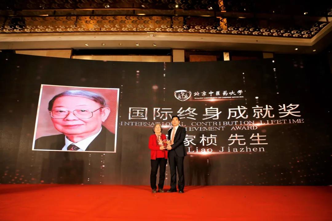 (我校商宪敏教授代表廖家桢先生领取北京中医药大学国际终身成就奖)