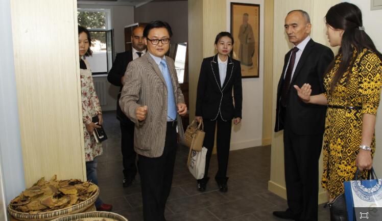 徐校长向来宾介绍了我校对外交流合作概况,以及在澳大利亚、俄罗斯、土库曼斯坦等国家筹建“中医中心”取得的成果,并建议双方在塔国合作建设“中医中心”,借助中心平台,进一步开展科研医疗合作,如共同推进中医师资格合法化、研究及开发天然药物等工作。