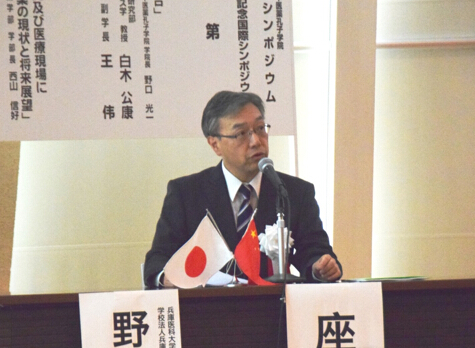 (图为2015年5月15日野口光一教授在中医药孔子学院双方院校学校法人兵库医科大学和北京中医药大学共同举办的“东西医学之融合”学术会议中的主持场景)